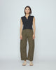 An elevated sleeveless knit cropped top. Features a modest v-neck, no-button placket, collar, and relaxed fit. Wide ribbing.