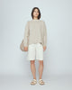 An effortless unisex sweater designed with subtle yet clever details. Features raglan sleeves, ribbed detailing along the neck and sleeves, notched high-low hem, and side slits.