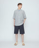 A casual short sleeve shirt cut with an intentionally oversized fit. Features two large patch pockets on the chest, a button-down collar, slighter longer sleeves, and a curved hem.